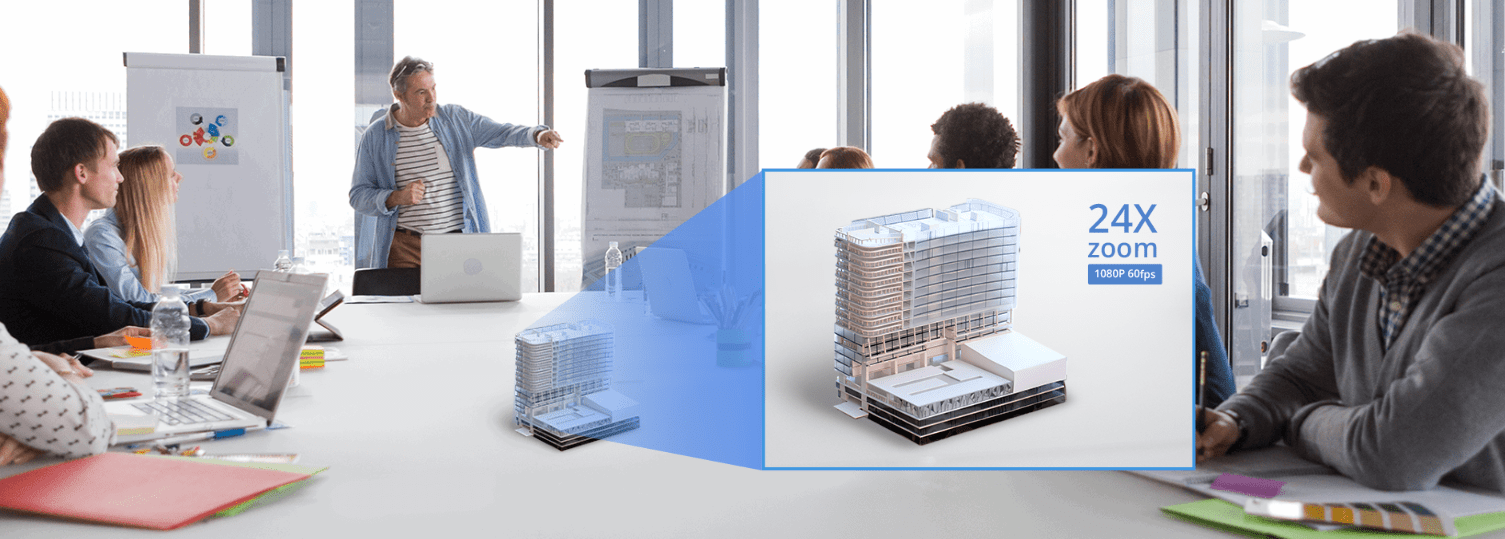 Các lợi ích kinh doanh được nâng cao bằng cách trình bày sản phẩm với độ rõ nét cao nhất và hiển thị đầy đủ chi tiết với tổng mức thu phóng 24X*. CAM520 Pro2 cung cấp hình ảnh video mượt mà hơn bao giờ hết với chất lượng lên đến 1080p, 60 khung hình / giây. Phóng to mọi khía cạnh của sản phẩm để giành được nhiều dự án kinh doanh hơn!