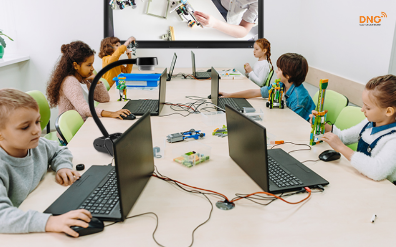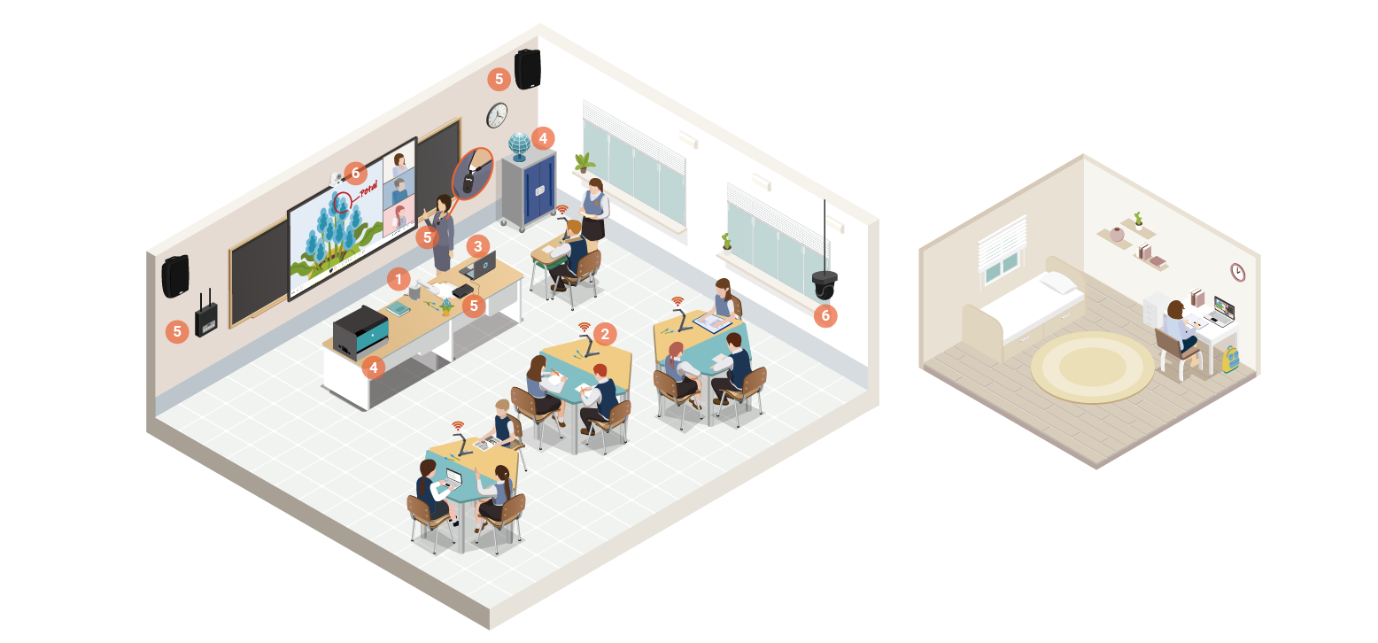 Hệ thống âm thanh phát trực tuyến, được trang bị hộp âm thanh phát trực tuyến, micrô và loa, đảm bảo giao tiếp rõ ràng cho cả giáo viên và học sinh. Hệ thống tăng cường tương tác trong lớp học, thúc đẩy sự tham gia của học sinh và tạo ra môi trường học tập tập trung hơn.