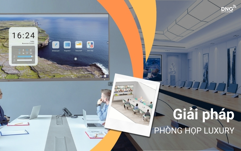 Phòng họp luxury là dạng phòng họp số tích hợp các công nghệ và thiết bị hiện đại vào phòng họp để tạo ra môi trường làm việc tiện nghi, tương tác và hiệu quả cao. Đây là giải pháp mang đến chất lượng âm thanh và hình ảnh đỉnh cao, hơn nữa người dùng có thể điều khiển tất cả các thiết bị trong phòng họp một cách đơn giản và thống nhất bao gồm thiết bị hội nghị trực tuyến, hệ thống âm thanh, màn hình, hệ thống ánh sáng, điều hòa,... chỉ bằng một thiết bị điều khiển.
