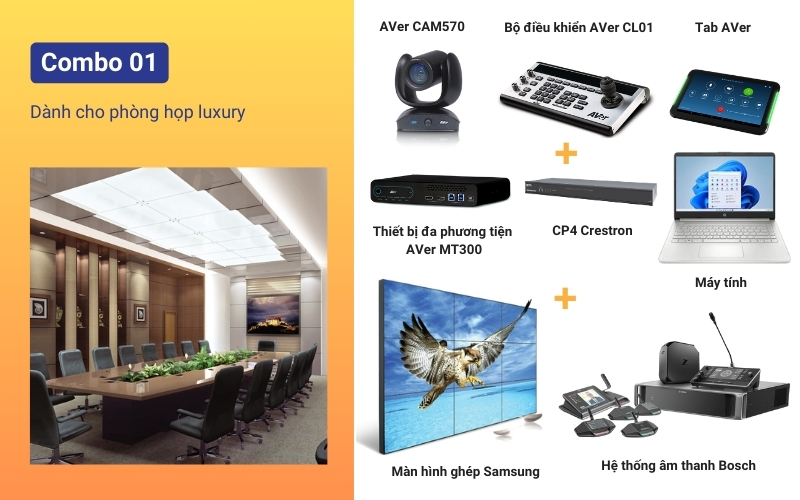 Combo giải pháp 1 dành cho phòng họp luxury bao gồm: