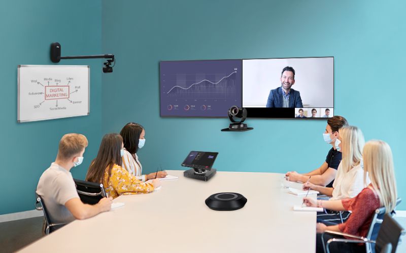 - Rõ ràng: Hình ảnh chất lượng 4K sắc nét cùng âm thanh cấp doanh nghiệp giúp người tham gia cảm thấy như đang trong cuộc họp trực tiếp.
