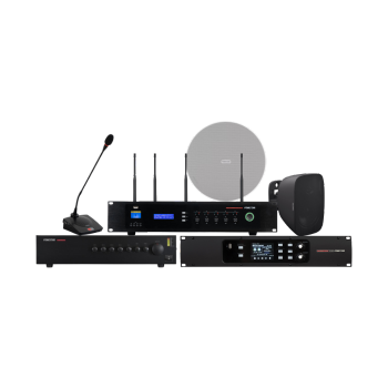 - Hệ thống âm thanh hội nghị Fonestar gồm amply, loa và microphone kết nối với các thiết bị hội nghị khác trong hệ thống để xử lý và truyền tải âm thanh tới khắp phòng họp.