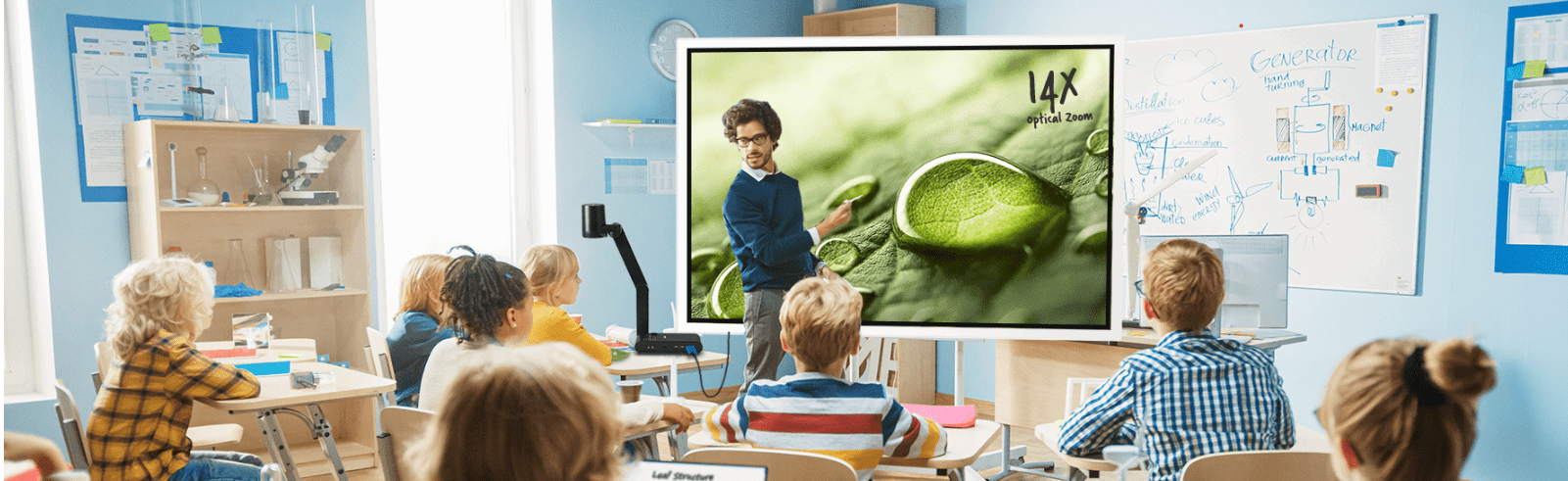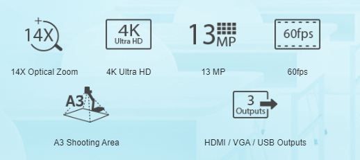Được trang bị ống kính zoom quang học 14X và zoom kỹ thuật số 23X, tổng mức zoom 322X tuyệt vời của M90UHD vượt qua mọi đối thủ. Mọi học sinh — ngay cả những học sinh ở hàng sau — có thể tận hưởng một hành trình học tập tuyệt vời mà không bỏ sót một chi tiết nào.