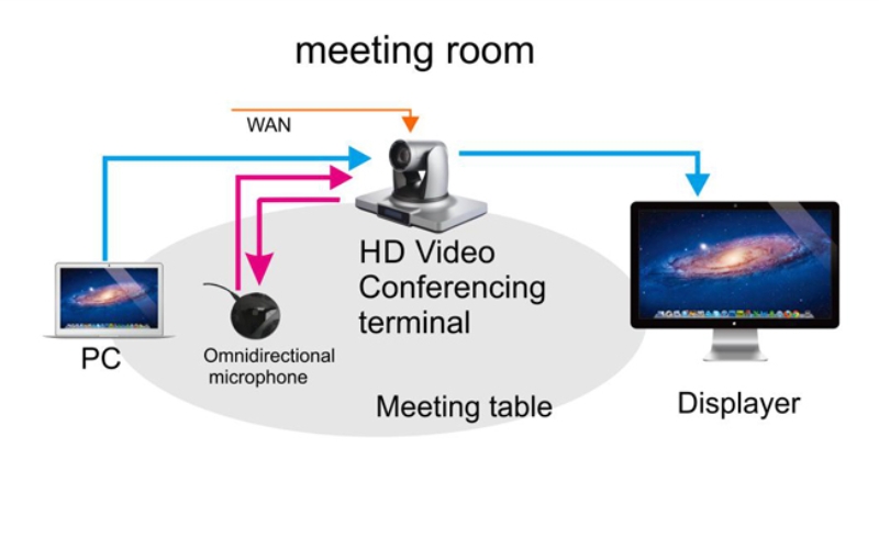 Ví dụ: Trường hợp công ty đặt trụ sở chính tại Hà Nội, muốn họp trực tuyến với điểm chi nhánh Hồ Chí Minh, thì ở mỗi điểm sẽ cần trang bị ít nhất 1 bộ thiết bị đầu cuối hội nghị truyền hình.