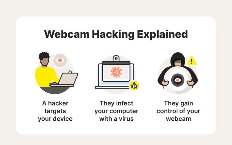 Thông thường webcam sẽ không tích hợp chức năng bảo mật. Vì vậy, các dữ liệu về hình ảnh, video mà thiết bị ghi lại có thể bị bên thứ ba đột nhập trái phép và theo dõi. Nghiêm trọng hơn, thông qua microphone được trang bị sẵn, họ có thể vừa xem và nghe được mọi hành động của bạn.